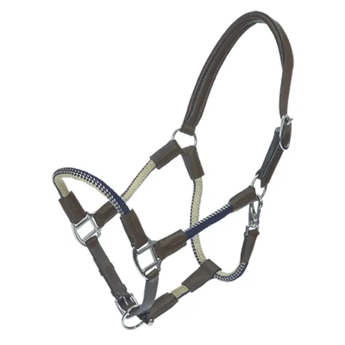 The Kavalkade Cavo Halter is a leather and rope combination. It features a padded leather crownpiece with single buckle closure and a leather chin piece with adjustable buckle. Leather joins the soft, braided rope to the hardware.Key features:Leather crown with single buckle adjustment.Leather chin with adjustable bucklet closure.Spring-loaded clip on the throatlatch.