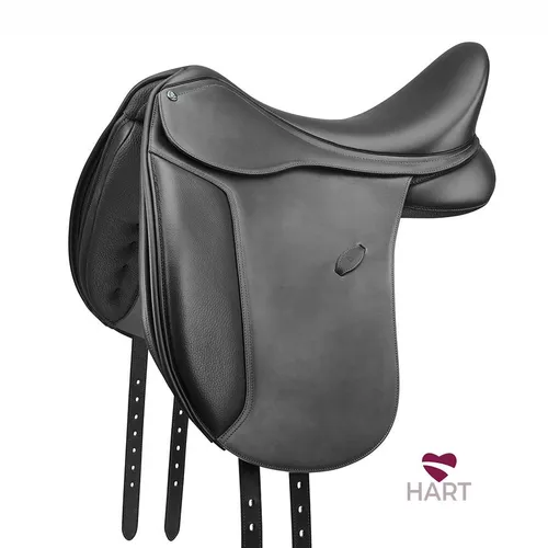 The Wintec 500 Dressage Saddle with HART is a great choice for riders just beginning to study dressage. Horse and Rider Technology (HART) offers multiple benefits in this most supple and durable leather-look saddle yet.The Wintec 500 has a deep, supportive seat to provide the new dressage rider with a feeling of security. The subtly textured synthetic leather is comfortable, grippy and easy-care, and it can be cleaned by hosing with water.For the horse, super-soft panels mold in and around the muscles, hugging the shape of the horse while providing the freedom to move. The EASY-CHANGE™ Fit Solution allows for an adaptable fit. Weighing just 14.1 pounds, the Wintec 500 with HART is also a joy to handle.HART delivers:Protective cushioning through the CAIR® Cushion Panel System. It uses air to distribute the rider’s weight fluidly across the horse’s back.Precision custom fit with the EASY-CHANGE™ Fit Solution, comprised of the EASY-CHANGE Gullet system and the EASY-CHANGE Riser system. Riders can select the optimal gullet width for the horse’s current shape and muscling, and make adjustments within the saddle panels for optimal balance and clearance. All adjustments are measurable, symmetrical and completely reversible.Ergonomic flex through the lightweight and durable Elastiflex Tree, which provides the lateral flexion to work with the horse’s muscular movement in every stride.Free movement supported by Performance Panel Technology shaped to support the horse’s natural motion and positioned to create a wide channel to clear the spine.Superior rider performance aided by Comfort Seat Technology. The seat gently supports the rider’s ability to move with the horse.Other key features of this dressage saddle include:Ergonomic Stirrup Bar: Places the buckle of a stirrup leather in a recessed position to reduce bulk under your thigh.Adjustable Flexibloc System: Enables you to customize thigh support to your preference.Quick-change billet system: Allows customization by a saddler or saddle fitter and provides the assurance that billets can be returned to factory standard for the life of the saddle.Adjustable Y-girthing: Allows for an ideal adjustment and promotes saddle stability.